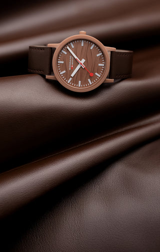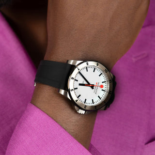 Our stop2go watch has not only inherited the iconic timeless design of the Swiss Railways clock, but also features a watch movement, exclusive to MONDAINE, that resembles that of this legendary clock. Just like the clocks across Swiss Railway Stations, the distinctive red second hand of the wristwatch makes a full circle turn in 58 seconds and then waits for 2 seconds when it reaches 12 o’clock, allowing the minute hand to elegantly jump to the next minute. A magical moment that allows us to stand still for a moment in a world that never seems to stop moving.