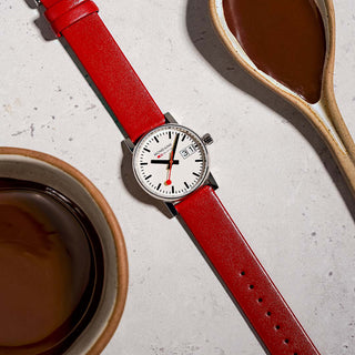 Leather watches speak of quality, durability and beautiful design, and none more so than Mondaine’s Swiss, minimalist watches. The soft, comfortable straps and classic design make these watches a popular choice for everyday wear. Our leather watches are designed to last, with high-quality leather straps that are comfortable to wear and durable enough to withstand the test of time.